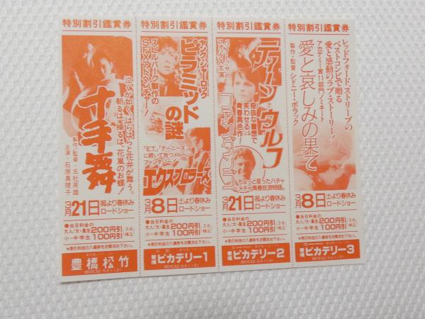 1078◆映画 パンフレット チラシ◆十手舞 ピラミッドの謎 ティーン・ウルフ ファンダンゴ 愛と哀しみの果て 愛知県 豊橋 豊橋松武 ピカデリー  15cm×13cm