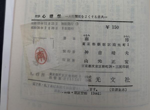 初歩心理学 : 人間関係をよくする道具 <カッパ・ブックス> 8版