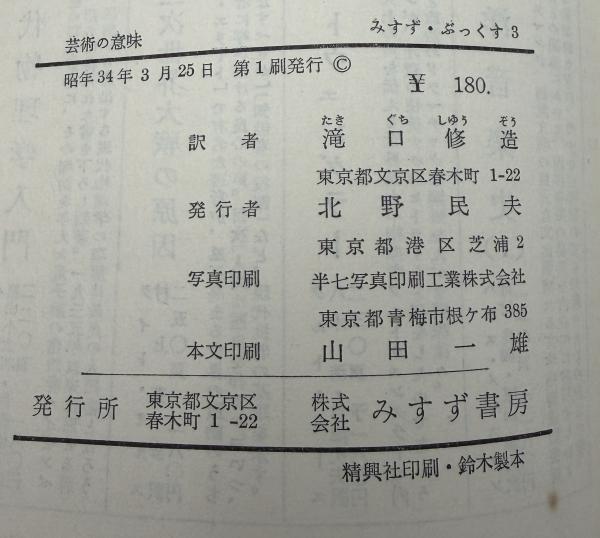 芸術の意味 <みすず・ぶっくす ; 第3> 初版1刷