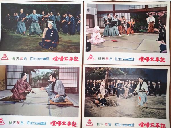 【総天然色 喧嘩太平記(市川右太衛門・主演/小沢茂弘・監督)・ロビーカード7枚組(B4/若干大きめ)】東映スコープ/昭和33年