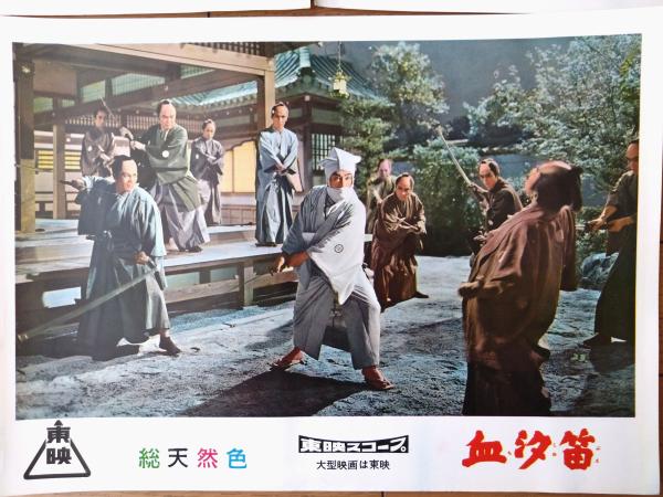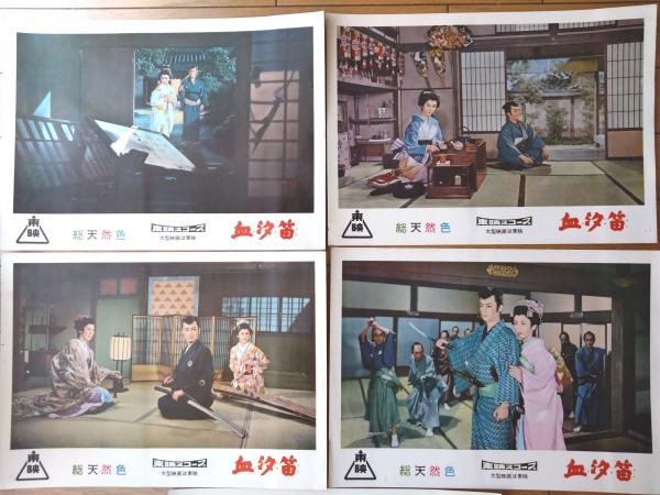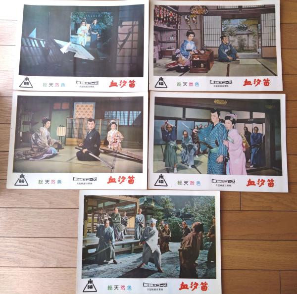 【総天然色 血汐笛(東千代之介・主演/小沢茂弘・監督)・ロビーカード5枚組(B4サイズ/若干大きめ)】東映スコープ/昭和33年