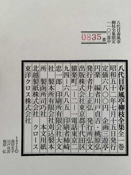 • 解説 835番/限定1100部 二重函あり 外函にキズ、シミ、イタミあり 本体三方少シミあり 値札跡あり