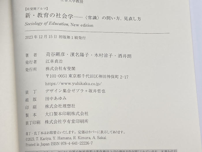 新・教育の社会学: 〈常識〉の問い方,見直し方 (有斐閣アルマ) 有斐閣 苅谷 剛彦