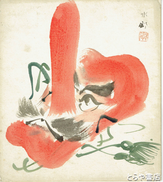 松本水邨色紙 「天狗の面」
