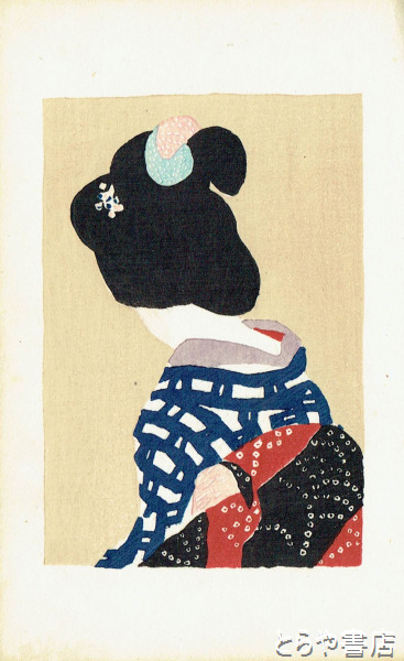 竹久夢二木版画「三味線草」 後ろ姿
