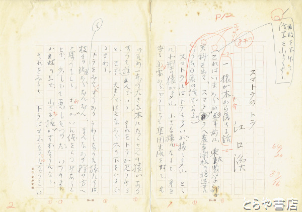 江口渙草稿 「スマトラのトラ」