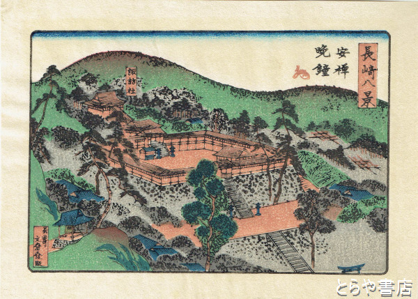 長崎古板画 大和屋由平板 長崎八景 全8景揃 解説付
