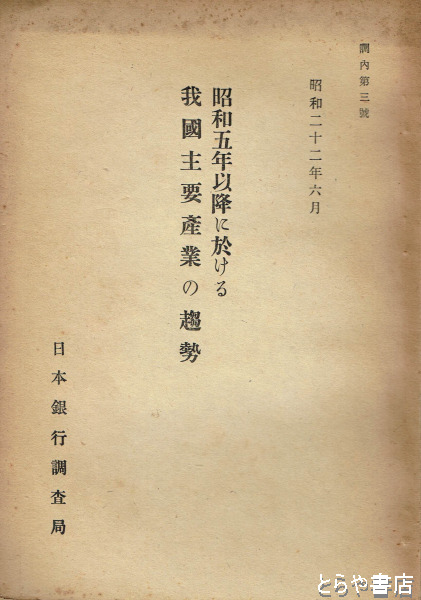 昭和五年以降に於ける我国主要産業の趨勢 調内第3号