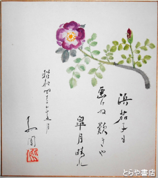 関孤円色紙 「浜茄子も画けぬ嘆きや皐月晴れ」