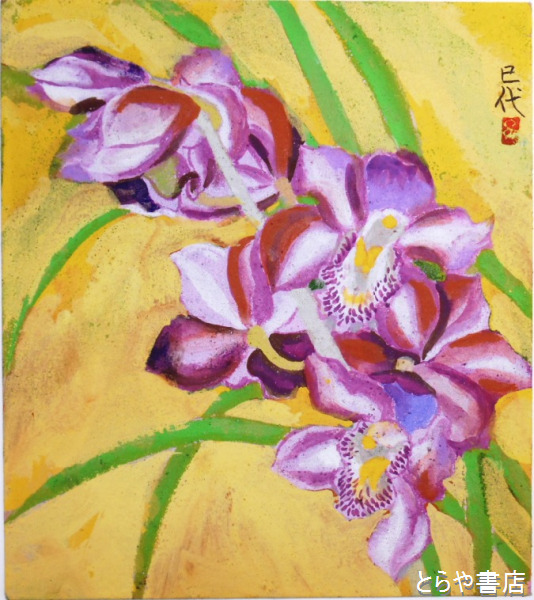 片岡巳代子色紙 「洋蘭」共袋