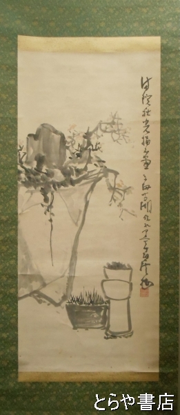 • 解説 初見一雄識箱 128×57センチ 淡彩 画賛 「満院秋光描不画」