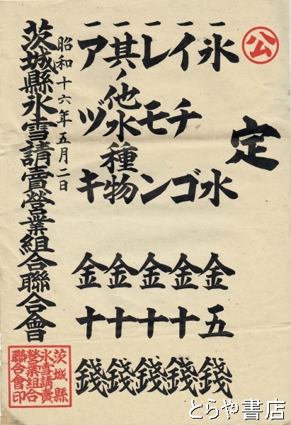 カキ氷公定定価表 四〇×二八センチ