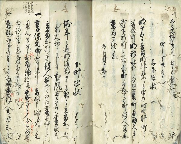 • 解説 八幡祭礼上金町より泉町 七軒町 吉田神社祭礼藤柄町など水戸に関する廻状 10丁 虫損あり