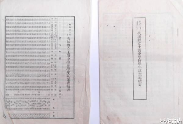 茨城県立土浦中学校学年試業成績表 明治36年3月・37年3月