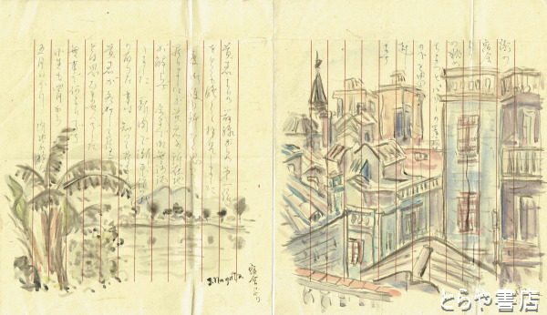 永田春水書簡 自筆画2枚入