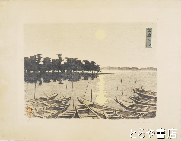 榎戸庄衛リトグラフ 水戸八景 「広浦秋月」