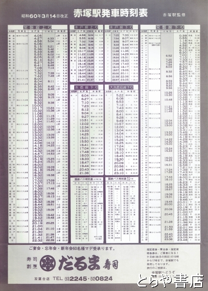 赤塚駅発車時刻表 昭和60年3月14日改正