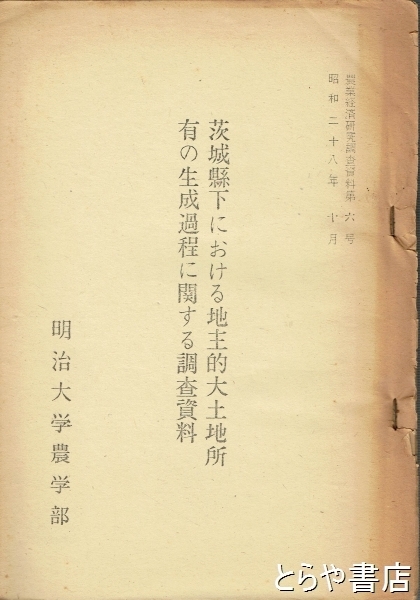 茨城県下における地主的大土地所有の生成過程に関する調査資料 農業経済研究調査資料6号