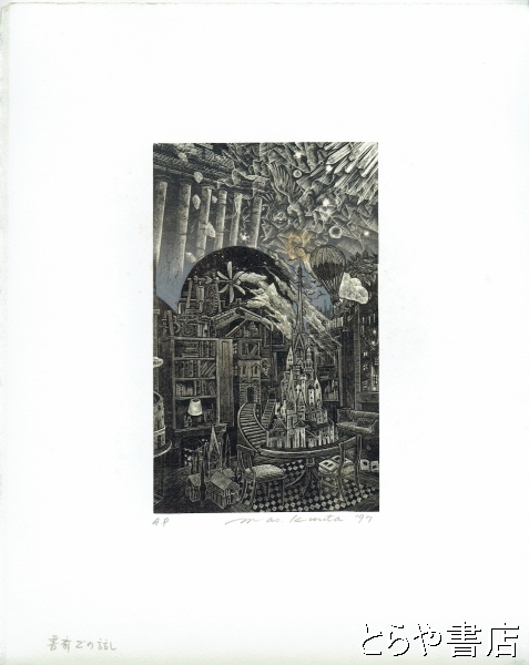 栗田政裕木口木版画「書斎での話し」 AP版 鉛筆サイン