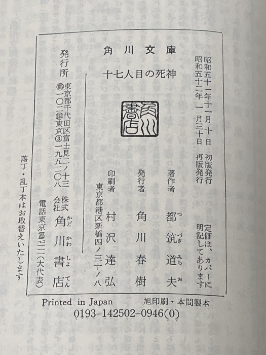 ※イタミ有 十七人目の死神 (角川文庫 緑) KADOKAWA 都筑 道夫