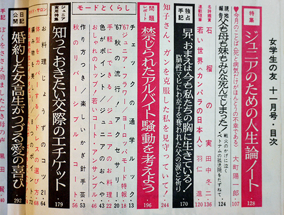 「女学生の友」第18巻9号 表紙・早瀬久美 絵・藤田ミラノ/藤井千秋/他 A5判 小学館 昭和42年