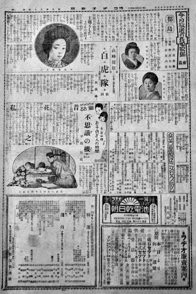 • 解説 前週放送の花形(写真集)/JOAK,JOBK放送プログラム/今日放送の筋/他