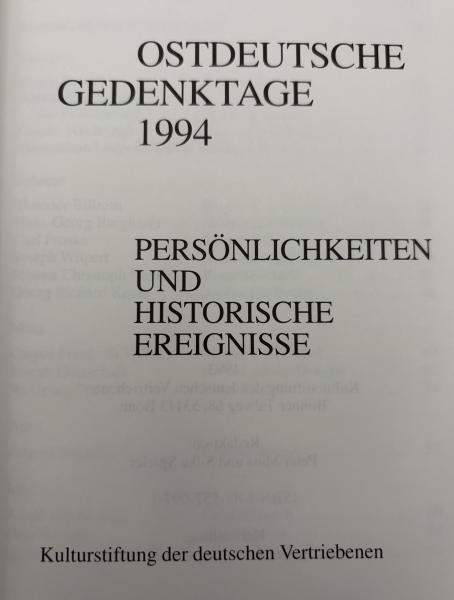 【ドイツ語洋書】Ostdeutsche Gedenktage 1994: Persönlichkeiten und historische Ereignisse (1994年 東ドイツ記念日:人物と歴史的出来事)
