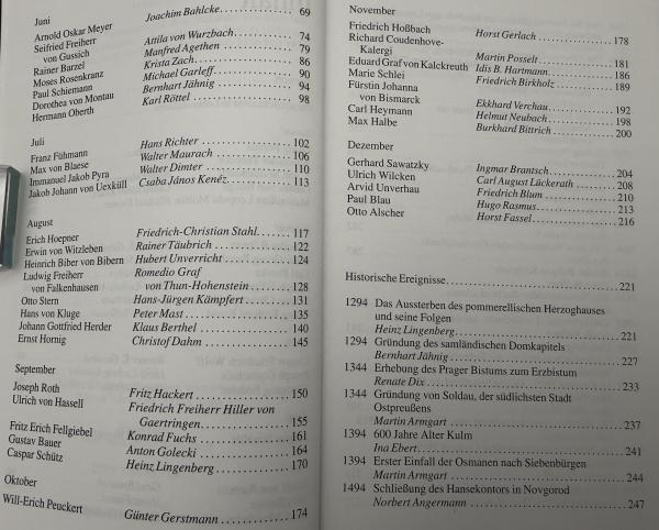 前半部分では、東部ドイツゆかりの各月ごとの著名な人物、後半部分は中世から近代までの出来事を紹介。