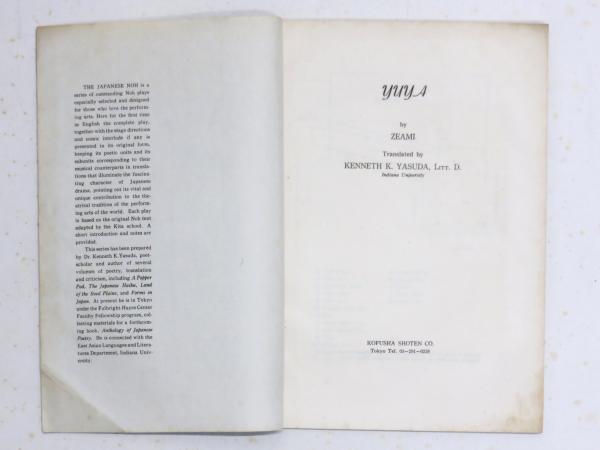 Yuuya. Translated by Kenneth K. Yasuda. [The Japanese Noh series] 英文 湯谷
