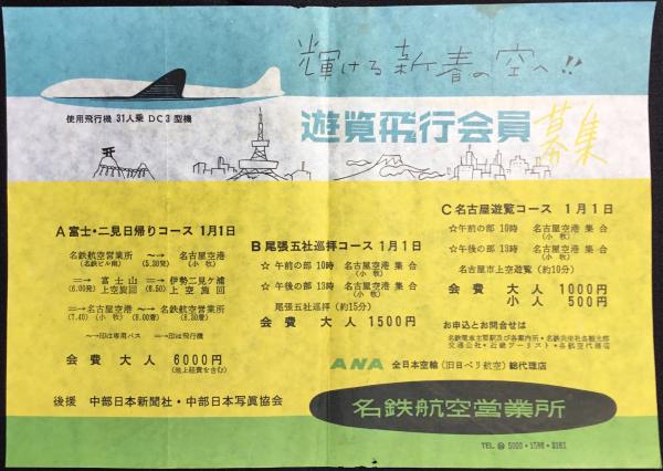〈チラシ〉全日本空輸(旧日ぺり航空)総代理店 名鉄航空営業所発行『遊覧飛行会員募集』