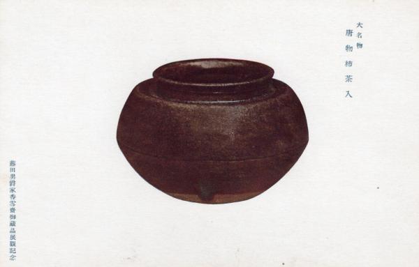 戦前絵葉書〇藤田男爵家(旧藤田財閥)香雪齋御蔵品展観記念 大名物・唐物柿茶入 古写真○和本古書古文書