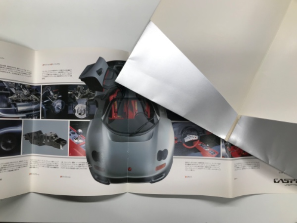 ④Super Sportscar JIOTTO CASPITA: カタログ 1部=タテ253ミリ×ヨコ360ミリ、カラー、約6頁、諸元表記載、ジオット発行。※専用紙ケースに入れるため、二つ折りにされています。