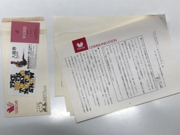⑥第28回東京モーターショー入場券 1枚=未使用。ワコール封筒入り