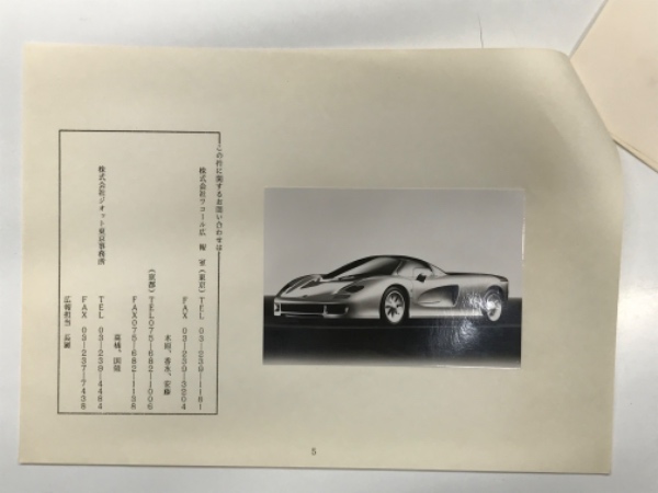 ③スーパースポーツカー ジオット・キャスピタ のプロトタイプ車完成について 1部=5頁・ホチキス止め。最終ページに紙焼き写真1枚貼り込み