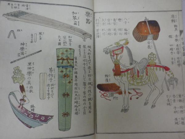 • 解説 明治32年刊行和綴和紙刷 彩色木版54面そのほか木版圖多数 表紙縁少し傷あるも経年比較おおむね保存良本文ヤケなし版画面鮮明(上余と下角にわずかに虫跡(一部補修) 元簽元装(上巻題箋下少し欠)