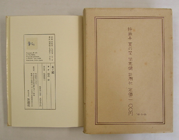 特装本 夏の闇 限60函袋 検印紙サイン自筆『私』 別紙解説付 袋少シミ有