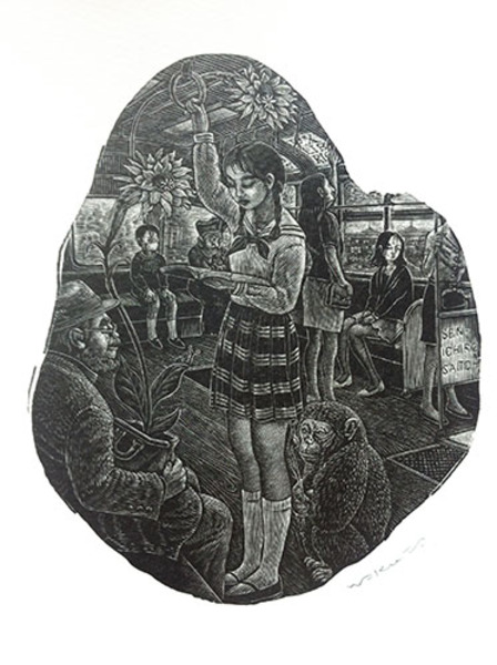 • 解説 木口木版 サイン 13×10.7 17×14.3