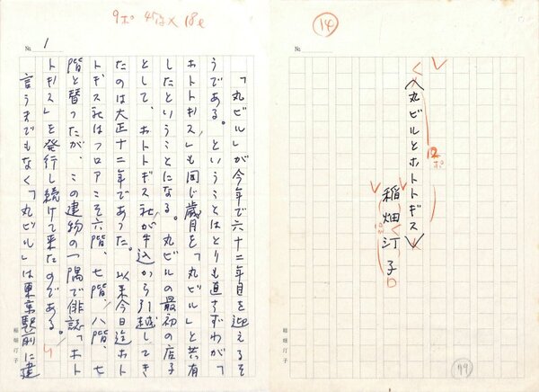 • 解説 『丸ビルとホトトギス』 ペン書 200字詰自家用箋17枚完 「丸ビルの世界」(かのう書房・昭60)掲載。表紙を含めると18枚。(種別)随筆 #八木書店近代自筆物/1.草稿類 #八木古書2026年3月新蒐 95313650 ※自筆物につきましては、毎月25日前後に新蒐品を追加しております。PDF形式で御覧になりたい方は https://company.books-yagi.co.jp/archives/news/10928 を参照ください。95号目録(R8.1)以後の追加は「#八木古書2026」で検索できます。