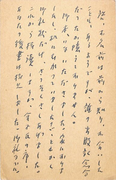 • 解説 宮崎譲宛 ペン書 8行 昭37・5・6(消印) 献本礼状。「机にむかつていましたので、ともかく御礼状だけ、さつそくさしあげました。これから拝讀しますが、金子氏の序、あなたの後書は拝見しました」。(発信地)柏市光ヶ丘(受信地)三鷹市上連雀 #八木書店近代自筆物/3.葉書類 #95号近代文学特輯 95501319 ※自筆物につきましては、毎月25日前後に新蒐品を追加しております。PDF形式で御覧になりたい方は https://company.books-yagi.co.jp/archives/news/10928 を参照ください。