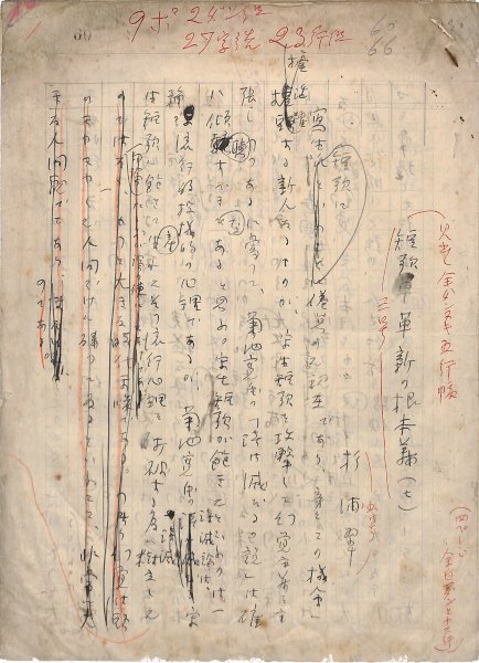 • 解説 『短歌革新の根本義』(七) ペン書 300字詰原稿用紙7枚表裏完 「短歌至上主義」(8巻7号・昭和15年7月号)掲載。300字詰原稿用紙(25字×12行)を、2文字増やし1行27文字で執筆。また裏面に罫線を引き表裏を使用。文章量としては324字詰13枚相当となる。(種別)短歌 #八木書店近代自筆物/1.草稿類 #八木古書2026年3月新蒐 95213110 ※自筆物につきましては、毎月25日前後に新蒐品を追加しております。PDF形式で御覧になりたい方は https://company.books-yagi.co.jp/archives/news/10928 を参照ください。95号目録(R8.1)以後の追加は「#八木古書2026」で検索できます。