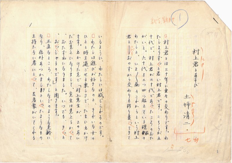• 解説 『村上君とあそび』 ペン書 400字詰原稿用紙5枚完 村上元三の人となり。月報類の原稿か。(種別)随筆 #八木書店近代自筆物/1.草稿類 #八木古書2026年3月新蒐 95512970 ※自筆物につきましては、毎月25日前後に新蒐品を追加しております。PDF形式で御覧になりたい方は https://company.books-yagi.co.jp/archives/news/10928 を参照ください。95号目録(R8.1)以後の追加は「#八木古書2026」で検索できます。
