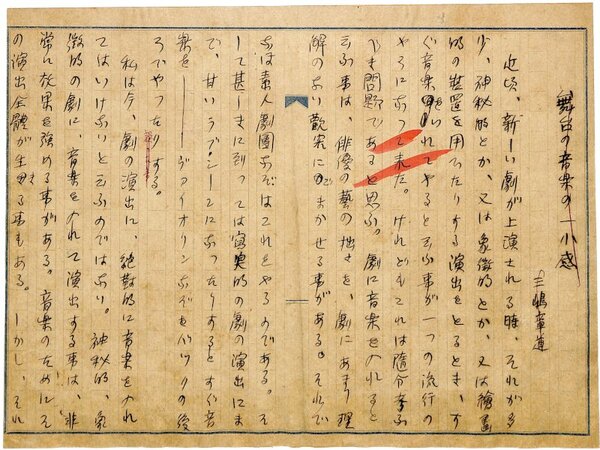 • 解説 『舞台の音楽の一小感』 ペン書 原稿用紙1枚未完 裁断 貼合 20行 大正~昭和初期において、新聞・雑誌の入稿媒体として実際に利用された草稿。(種別)資料 #八木書店近代自筆物/1.草稿類 #95号近代文学特輯 95109094 ※自筆物につきましては、毎月25日前後に新蒐品を追加しております。PDF形式で御覧になりたい方は https://company.books-yagi.co.jp/archives/news/10928 を参照ください。