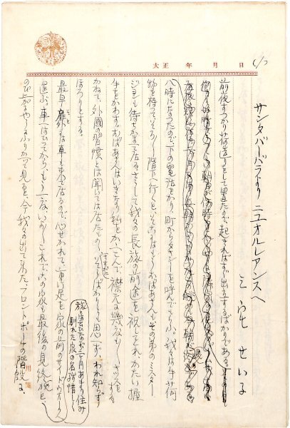 • 解説 『サンタバーバラよりニユオルレアンスへ』 ペン書 三宅用箋6枚 不揃 アメリカ旅行の紀行文。3、4枚目欠。(種別)紀行 #八木書店近代自筆物/1.草稿類 #95号近代文学特輯 95810297 ※自筆物につきましては、毎月25日前後に新蒐品を追加しております。PDF形式で御覧になりたい方は https://company.books-yagi.co.jp/archives/news/10928 を参照ください。