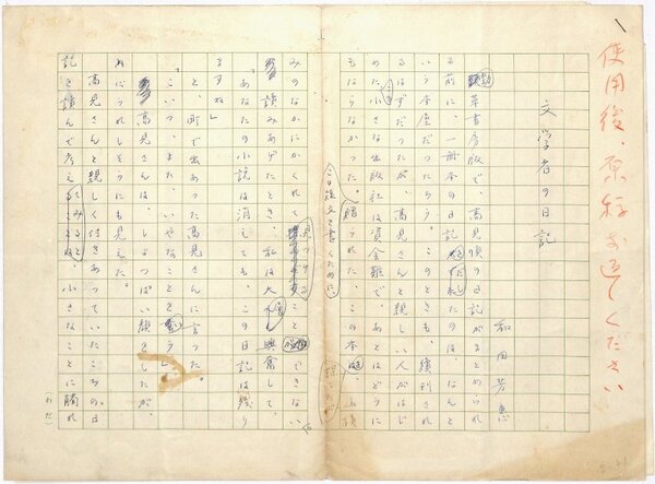 • 解説 『文学者の日記』 ペン書 400字詰自家用箋4枚完 日記文学の読み方と深奥について。(種別)随筆 #八木書店近代自筆物/1.草稿類 #95号近代文学特輯 95409498 ※自筆物につきましては、毎月25日前後に新蒐品を追加しております。PDF形式で御覧になりたい方は https://company.books-yagi.co.jp/archives/news/10928 を参照ください。