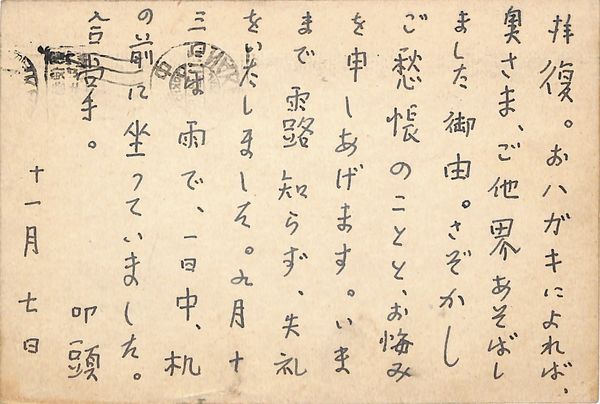 緒方昇葉書(ペン/お悔み)