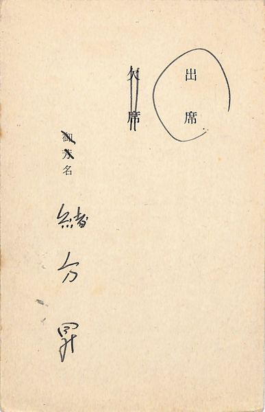 緒方昇葉書(ペン/出欠)