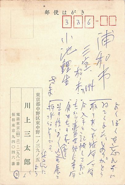 川上三太郎葉書(ペン/会費受領証)