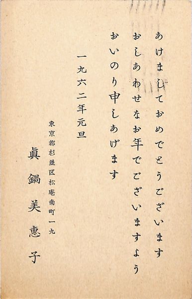 眞鍋美恵子葉書(印刷/年賀)