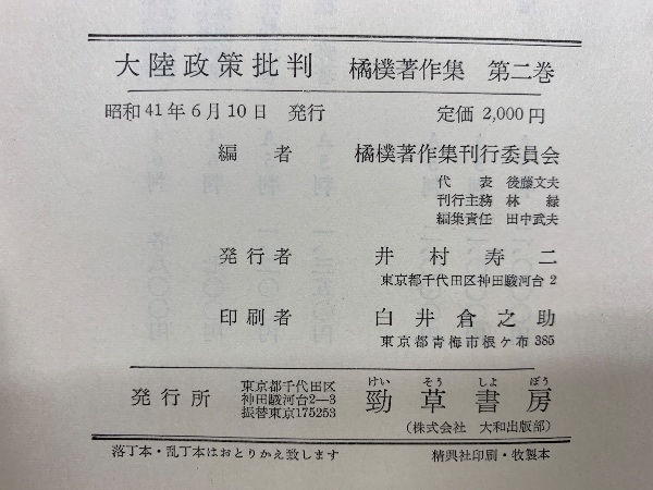 大陸政策批判 橘樸著作集 第二巻