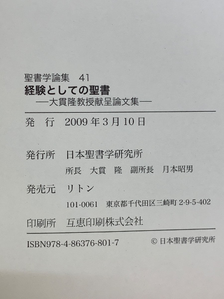 経験としての聖書  聖書学論集41 大貫隆教授献呈論文集